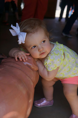 Saturday we had eggs and bacon and hit the swing set before nap time. Then we worked out and had lunch before second nap. Then we shopped for puppies and went to Champps for dinner and the Kentucky Derby. Lyla loves ponies.